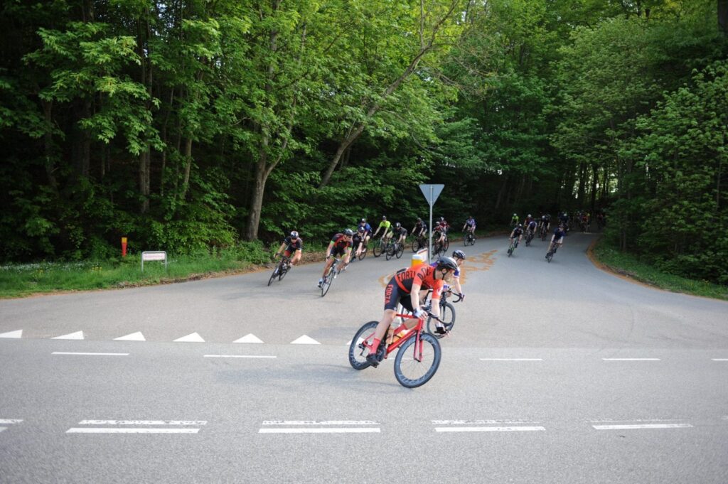 Jeg ramte efterhånden nogle mere snørklede veje, med små bakketoppe og en del sving. Jeg huskede området fra de forrige år. Jeg besluttede mig for at grave dybt nu, og få dem ud af synsvide. Måske ville det gøre, at de opgav at jagte mig. Her var jeg presset, og jeg følte lidt at maven lige var ved at vende sig på vrangen! Det var dog det hele værd for pludselig kunne jeg ikke se dem mere. Jeg fastholdt presset på pedalerne. Min mentale målstreg blev Bjergvej. Derfra måtte jeg lave status. Et par kilometer før Bjergvej begyndte jeg at tage lidt at intensiteten af. Jeg skulle lige have det sidste skud til den. Faktisk vurderede jeg, at jeg kunne tage den okay med ro op af Bjergvej, nu hvor jeg havde et fornuftigt forspring.