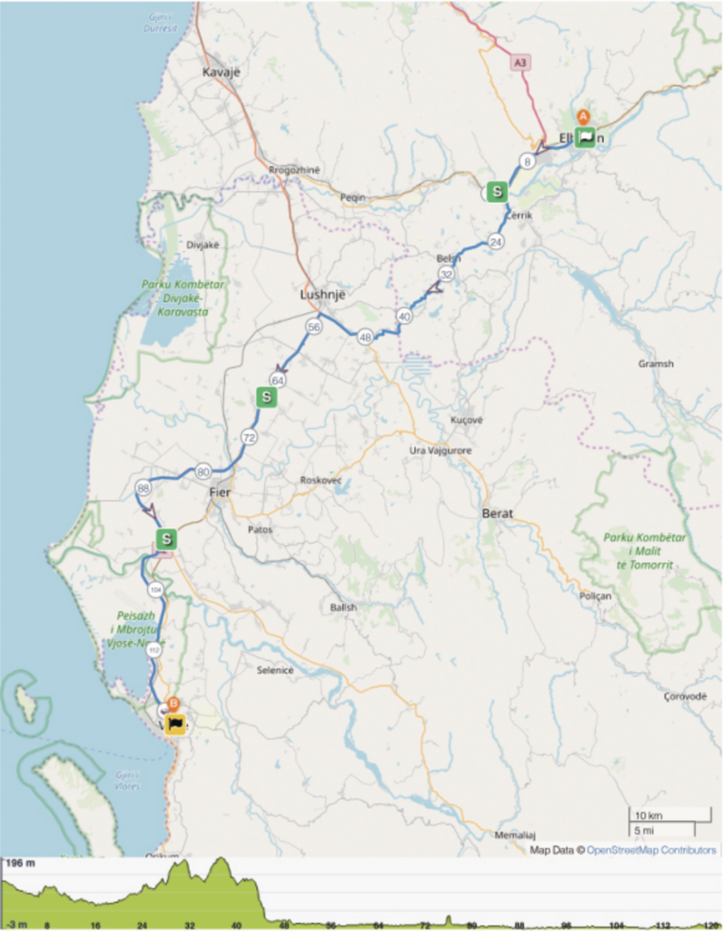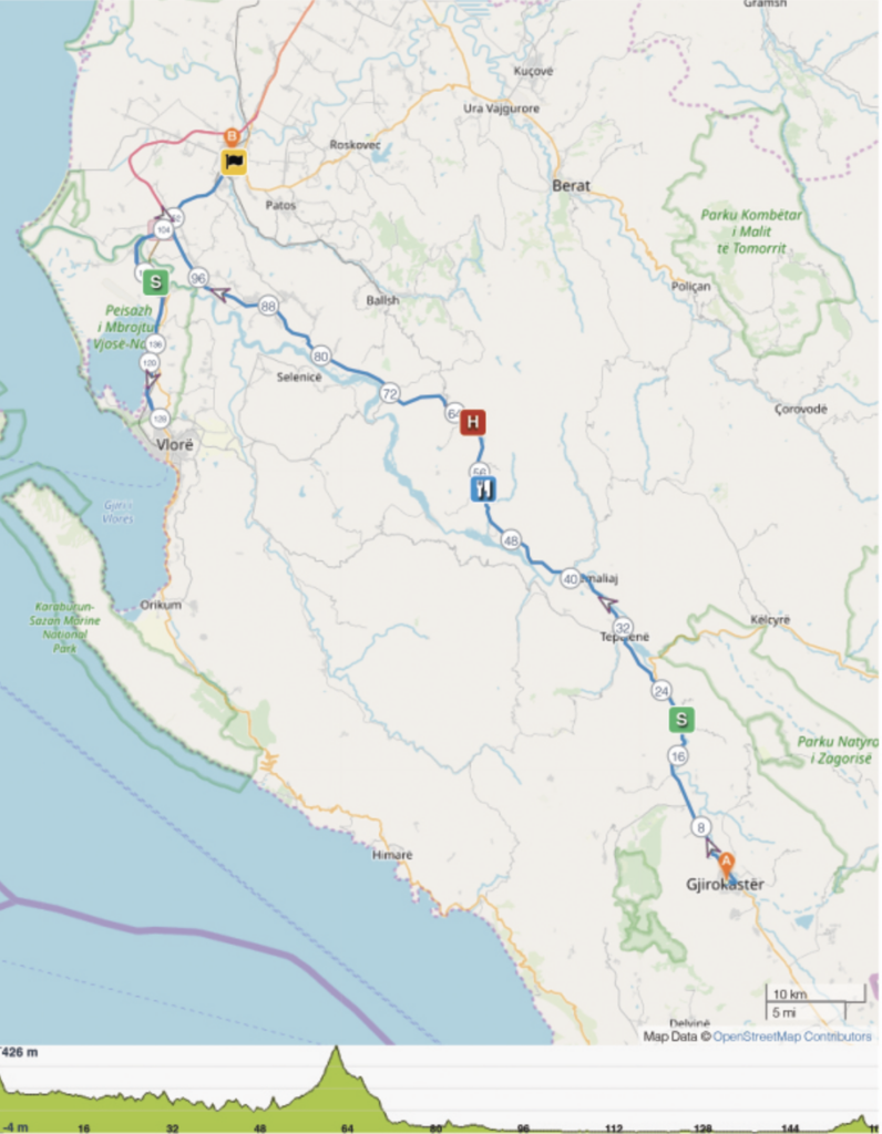 Dette var ment til at være løbet korteste rute, blot 122 kilometer. Mange albanere var meget bekymret over sidevinden på de små veje, med mange 90 graders sving. Set ud fra et dansk perspektiv burde 4-5 m/s ikke være rigtig sidevind, haha.