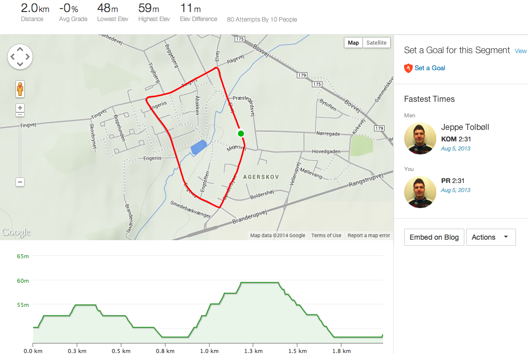 Med 47,3 km/t i snit så skal der virkelig køres stærkt for at slå den KOM, og hvis jeg ikke kan vinde løbet så skal den forsvares! (Ja, det var ironisk, jeg går ikke så meget op i KOMs, selvom de da er sjove!).