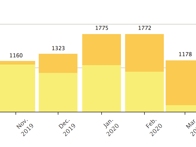 Den gule farve er alt min Zwift-træning, mens den orange er mine udendørs.