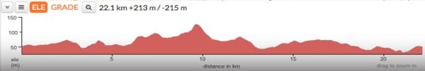 Ruten er flad, men med en lille knold når man når lidt over halvvejs, og er på vej tilbage til mål.