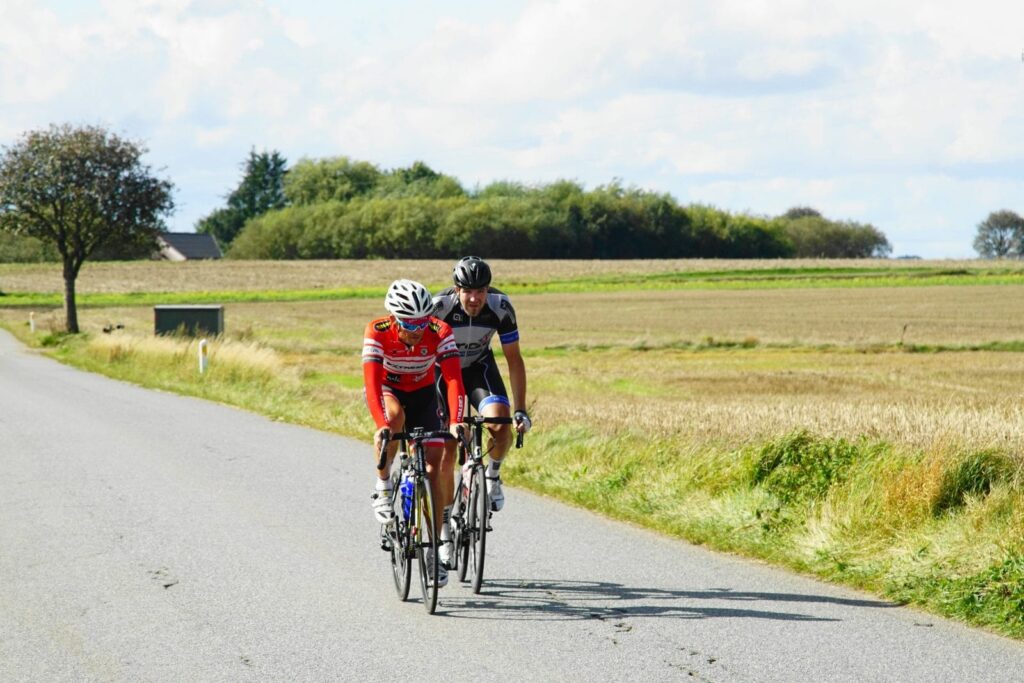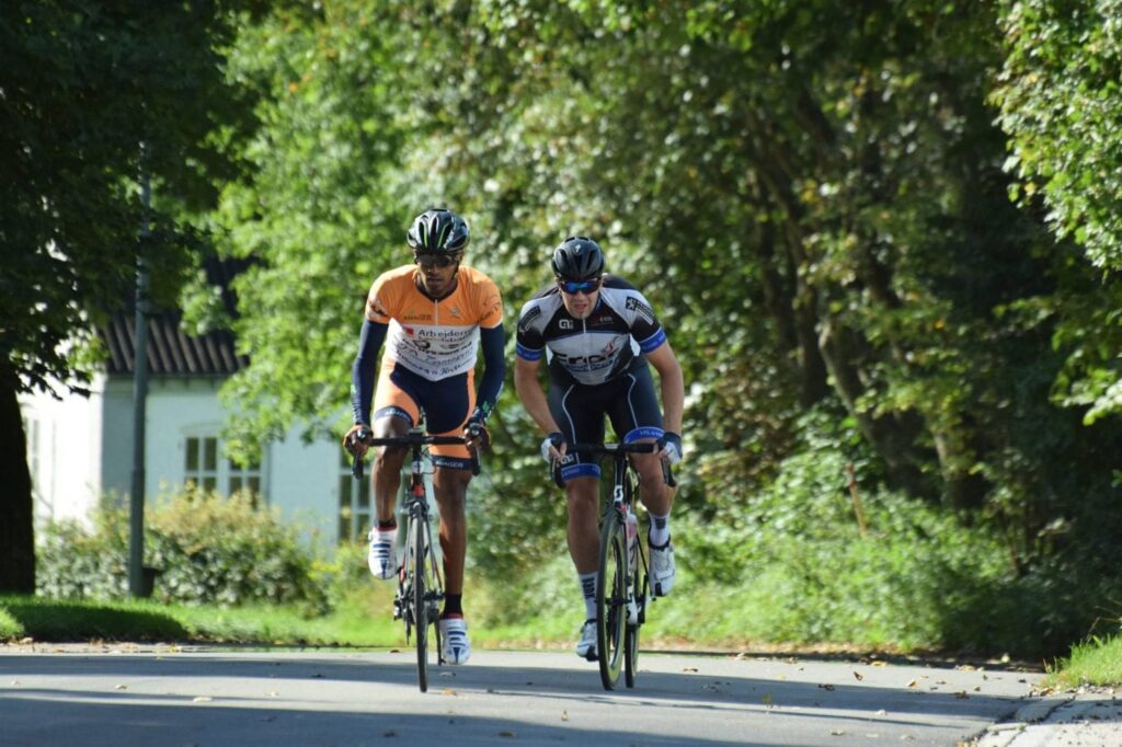 Der var flere angreb, hvor af jeg var med i et par stykker, men intet kom rigtigt fri. Ruten kom nu til en knap 180 graderssving, og jeg tror det var Rasmus Søgaard, CK Aarhus, der lige sagde “Nå, nu kommer bakken!” Nej, det gjorde den vel ikke allerede? Det var jeg altså ikke klar helt klar til. Mens jeg prøvede at finde lidt læ i feltet, kørte 3 ryttere væk, hvor den ene blandt andre var Anders Banke, som åbenbart angriber på alt for tiden!