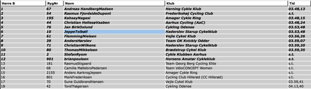 Nå, men jeg kørte en ekstra omgang for lige at rase af for mig selv, inden jeg trillede hen til bilen og kørte hjem. Rigtig skuffet, og ret bange for søndagens 141 kilometer i Horsens!