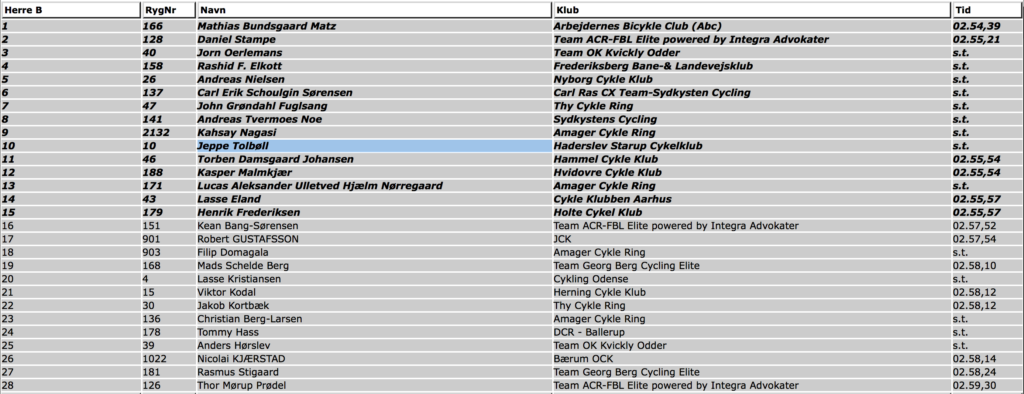 Dog fik jeg bekræftet overfor mig selv, at formen var præcis hvor jeg kunne forvente. Jeg kunne lukke huller solo (selvom det var træls at det var nødvendigt!) og jeg kunne tonse og holde nogle watt, jeg sjælendt har kunne så sent i et løb. Jeg må også bare erkende at niveauet blandt toppen af B-klassen er RIGTIG højt! Og hvor jeg nok er knap 15 år ældre end mine fleste modstandere, så tør jeg slet ikke tænke på hvordan Torben fra Hammel nogle gange har det med sine 50 år! 😉