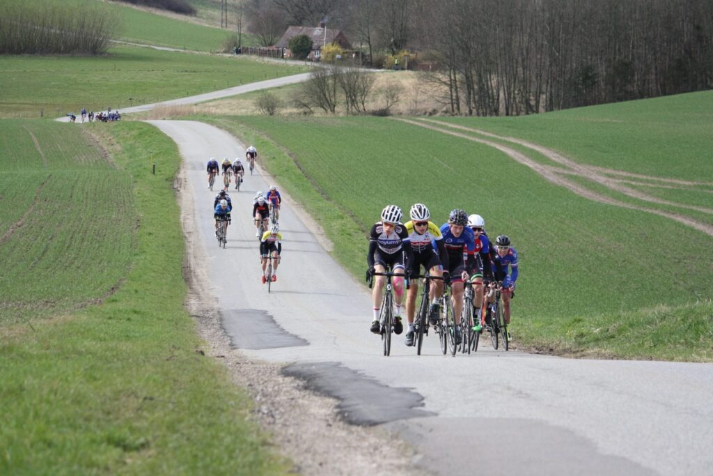 Jeg kom med henover bakkerne, selvom Kirkebakken var ved at tage livet af mig. Jeg tror faktisk jeg var sidste mand der kom over i feltet, selvom jeg kørte ind på den som første mand! Jeg var godt og grundig ristet herfra. Faktisk så meget at da vi senere ramte sidevinden, endte jeg med at sidde lidt for langt tilbage og endte derfor 4-5 positioner bag viften. Jeg led ikke sådan rigtig på dette tidspunkt, men irriterede mig over, at jeg ikke bare lige havde kørt mig lidt frem, så jeg havde sparet kræfter.