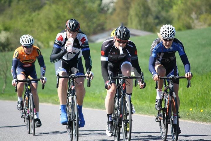 Herefter kørte vi bare rundt indtil vi ramte kirkebakken igen. På vej op af den fik jeg endnu en krise, jeg nåede lige at tænke, at nu måtte jeg slippe gruppen, men mærkede så en hånd hive fat i mig og rykke mig fremad, efterfulgt af et venligt puf i ryggen. Det var Eskil, som havde set krisen (eller hørt på mit lokomotiv af lunger?) som lige gav den sidste hjælp. Jeg kunne kun besvare hjælpen med en thumbs up, tak Eskil!