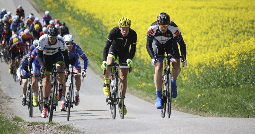 Så snart vi ville få lukket hullet til fronten, så ville der bare komme nye angreb. Så derfor begyndte vi at rykke et par stykker. Men Herning var hurtig over udfordringerne og styrede det med hård hånd! Det var, for mig, sygt hårdt, men jeg vidste at jeg næppe ville overleve kirkebakken igen, såfremt der kom et lignende angreb som første gang. Så jeg fortsatte med at prøve at hugge afsted, men lige lidt hjalp det. Selvom jeg fik en lille krise på en længere bakke før kirkebakken, så prøvede jeg igen og igen, sammen med andre, – men lige lidt hjalp det. Kirkebakken kom tættere og tættere på, så nu satte jeg mig ned i feltet og prøvede at få så meget læ som muligt.