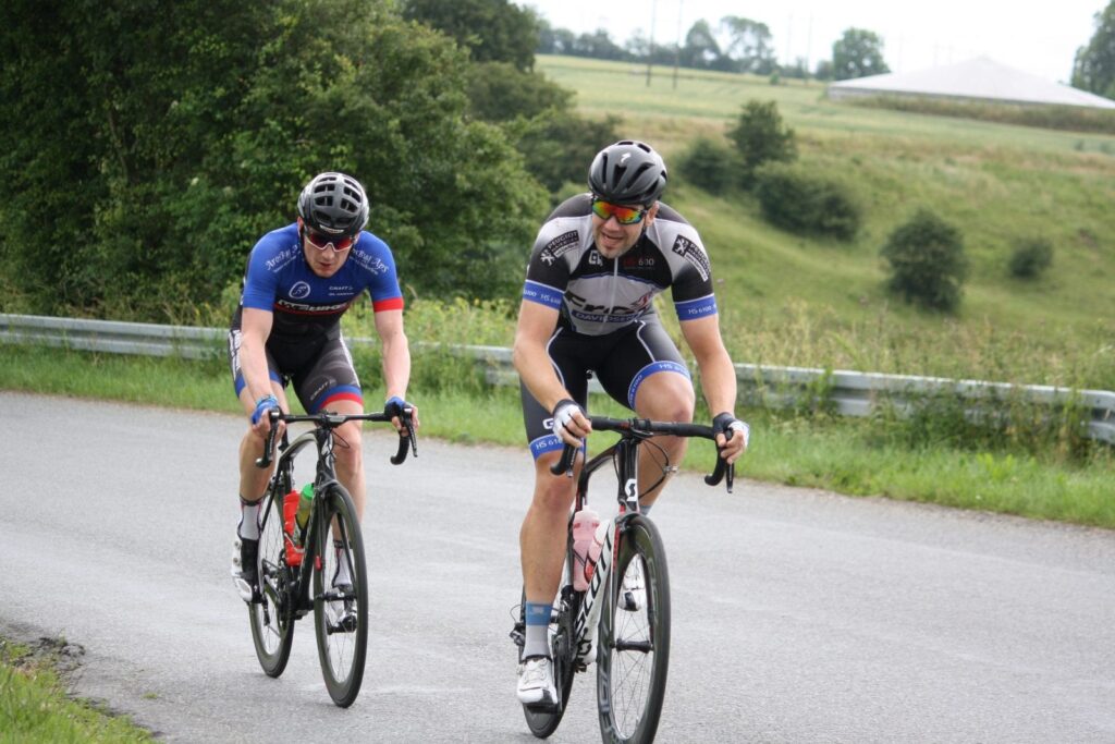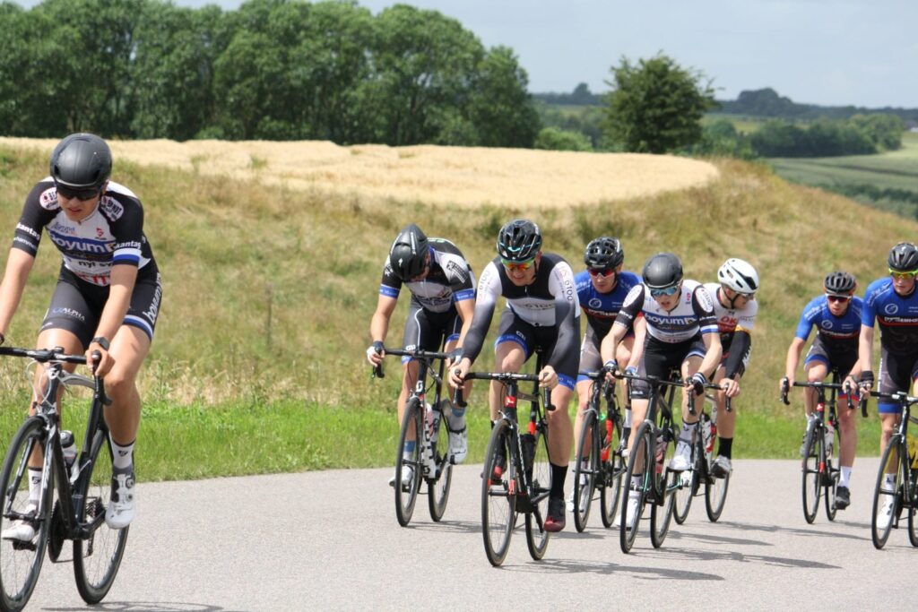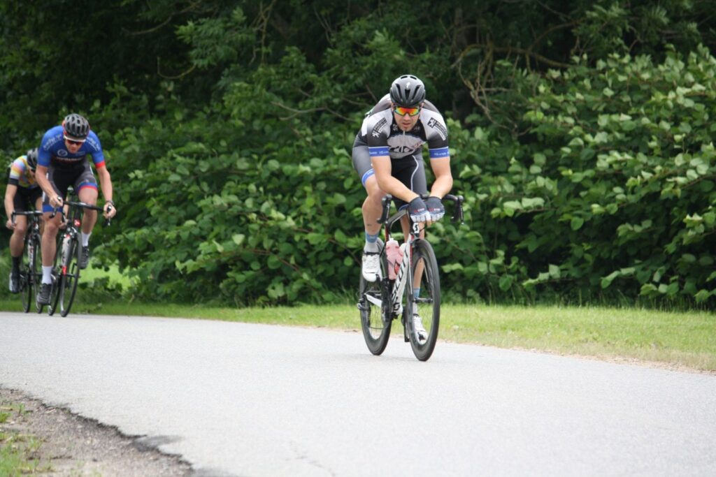 Okay, det var ikke 100 % optimalt med 3 ud af 6 ryttere i front som kom fra CK Aarhus. Derfor spejdede jeg bagud, og tog ikke del i føringerne, da jeg havde min klubkammerat Michael Damm Kohberg til start i B-feltet. Hvis han var i nærheden af at komme op solo, eller med 1-2 mand mere, så ville jeg vente.