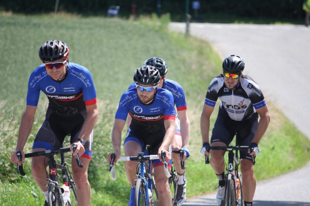 Okay, hvordan skulle jeg nu gribe den an, rent taktisk? Michael og jeg kunne have udnyttet hinanden i angreb, men jeg kendte ikke 100 % Rasmus Rauchs styrke, og syntes det var svært at læse om han var ved at være mør. Personligt havde jeg stadig diamanter i benene. Jeg kørte ned til ham, og sagde at vi måtte sidde over skiftevis, og lade CK Aarhus-drengene tage ansvaret. Og det begyndte vi så på. Holleufer sagde til os, at hvis vi ikke ville køre med rundt, så ville de angribe os på skift. Og med 4 omgange igen (48 kilometer) var det sgu for tidligt, så vi begyndte at føre med igen, men for mit vedkommende slet ikke med fuld kraft mere. Og på opløbsbakken, og en mindre bakke efter mål sad jeg over. Jeg prøvede at spille “Jeg er tykkere end jer”-kortet, men tror det var Søgaard, der lige måtte påminde mig om, at så meget steg det sgu heller ikke! Busted! Nej, det gjorde det ikke, og mit lille bluff blev opdaget. Jeg tog min føring.