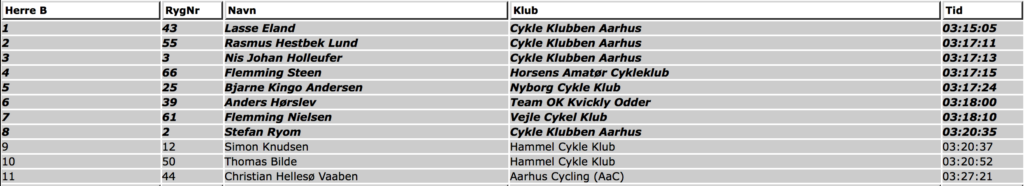 Faktisk gik det okay, og jeg endte med at komme i mål omkring 1,5 minut efter de 3 i front. Michael endte med at stikke fra gruppen bagved og tog sig af 5. pladsen.