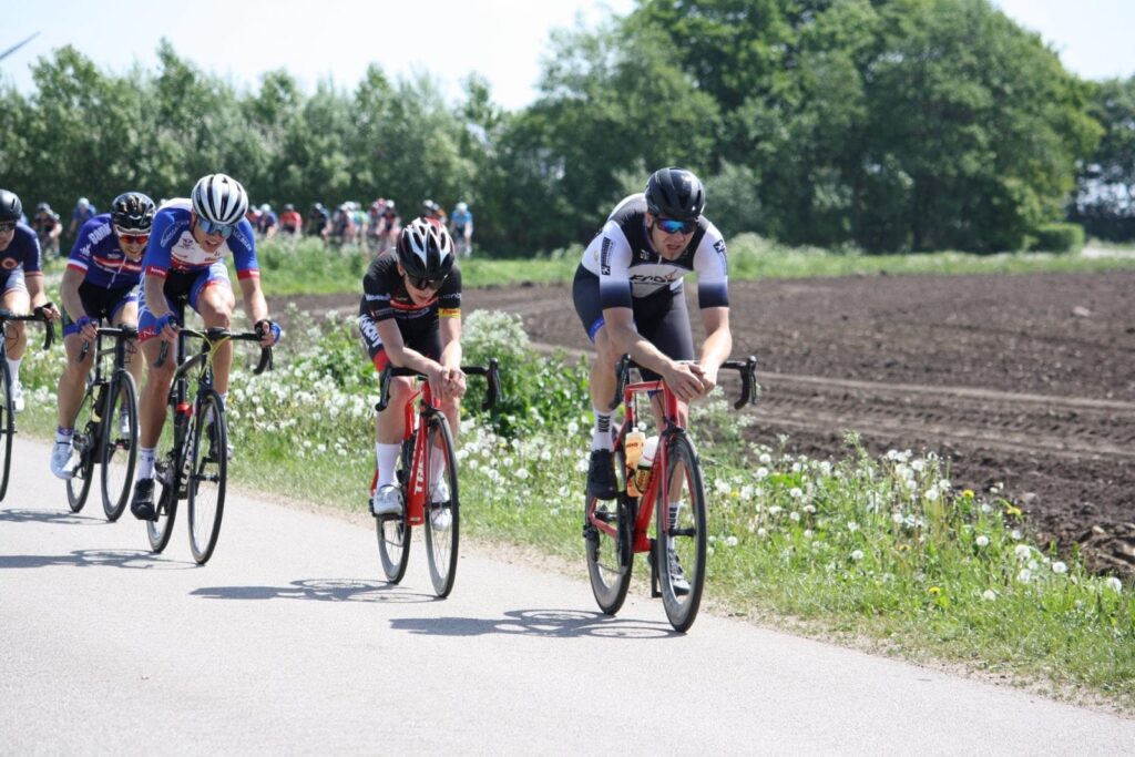 Jeg startede lidt tilbage i feltet, og regnede egentlig med, at skulle holde den roligt de første 30-40 minutter. Så derfor følte jeg ingen fare ved at ligge mig ned godt bagerst i feltet, men til min store skræk kunne jeg se, at mere eller mindre fra allerførste kilometer kørte der 9 mand væk, der i blandt Damm! Det var selvfølgelig fint at få ham med ud foran, men man følte det var lidt fesen af 9 mand fik så nemt lov til at køre væk. Wilkens og min opgave skulle nu være, at komme med i de hug bagfra, men ikke trække feltet med. Alle de “store kanoner” som jeg holdt øje med, havde også misset udbruddet så jeg følte mig egentlig relativt afslappet, men droppede lidt ideen om at holde mig roligt i løbets indledende fase.