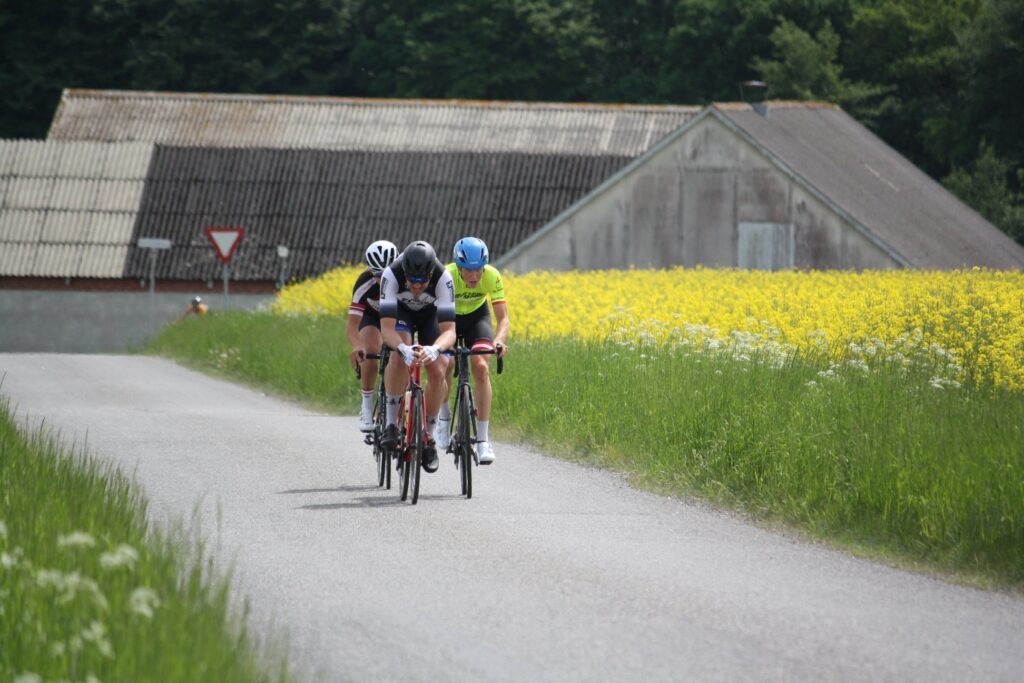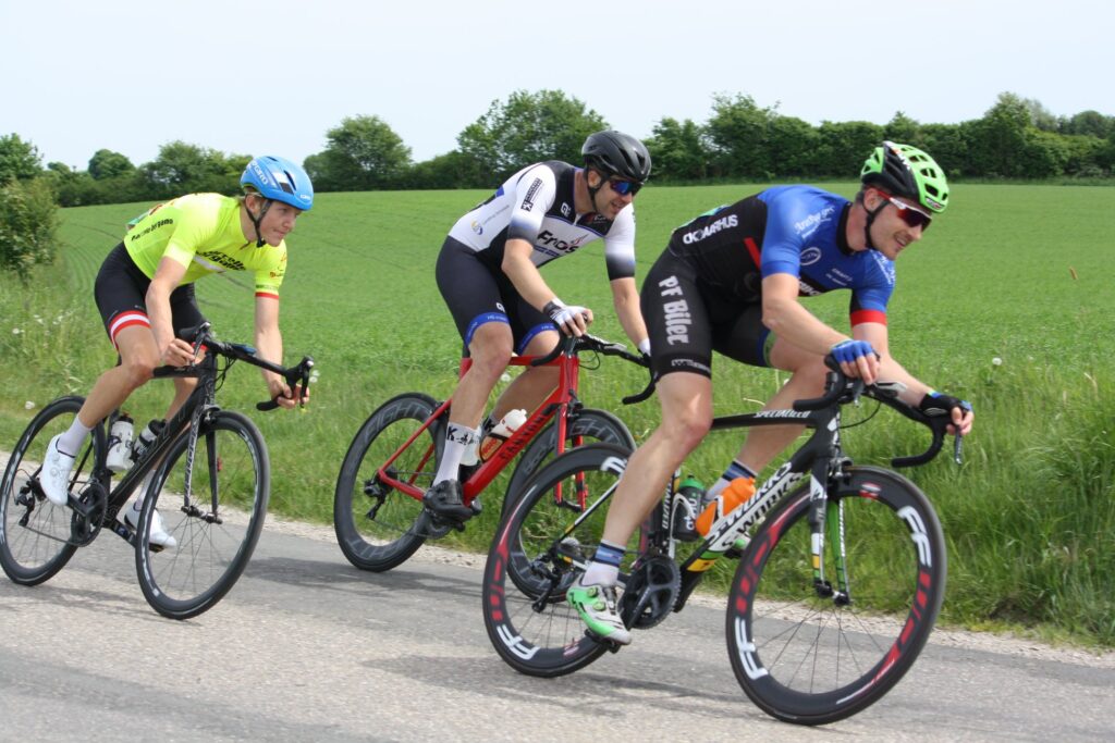 Cirka halvvejs på 2. omgang fik vi dog lidt dramatik. Der var en angreb i gang, og jeg lå relativt langt fremme i feltet, da vi ramte et lidt svært venstresving. Et par pladser foran mig angreb Fredrik Leicht, FBL, men oversatsede svinget og kørte af vejen. Dog styrtede han ikke, men endte 2-3 meter ude i marken. Han lignede dog en der hurtigt kom op på asfalten igen, og nok skulle komme med i feltet. Kort før Pøt Mølle slap 3 ryttere væk i Casper Ilsøe, Herning CK Elite pb Look, og Lasse Eland og Jes Steengaard, begge CK Aarhus. Jeg sad ikke i en position hvor jeg kunne have kørt med, men havde nok næppe heller prøvet, da jeg sparede mig til Pøt Mølle.