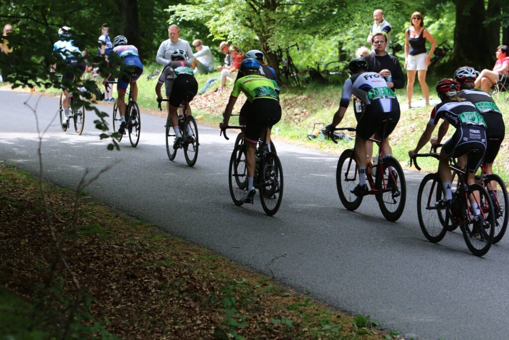 Lige inden nedkørslen sad jeg næsten først, men tænkte at jeg ville prøve at slå et hul ned af. Det krævede blot at rytterne lige foran mig ville åbne et lille hul i mellem sig. Da det kom rykkede jeg, og fik hullet, og på nedkørslen fik jeg skabt mig et bette hul for Pøt Mølle, som jeg kom først ind på – fra feltet. Herfra kørte jeg bare kontrolleret, da jeg vidste at feltet ville hente mig op af, men faktisk var jeg næsten halvvejs oppe før der kom en stor gruppe, på en lang linje forbi. Da bakken fladede lidt ud fik jeg kilet mig ind på hjul og vi var måske 15-20 mand, hvor feltet var knækket i to. Personligt var jeg ikke i stand til at hjælp med at føre, men havde nok med blot at holde hjulet på rytteren foran. Længere fremme kunne vi stadig se trioen i udbrud.