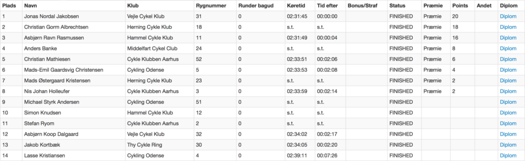 Jeg skal i den kommende weekend ikke køre licensløb, da jeg springer Nyborg over og kører 140 kilometerruten i Grejsdal. Det bliver en solid, men ond, træning for en sværvægter! Der kommer en anmeldelse af løbet senere.