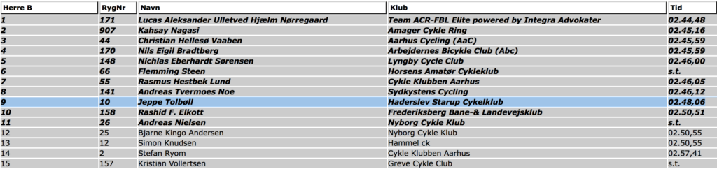 I øvrigt endte løbet således.